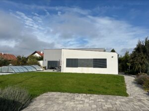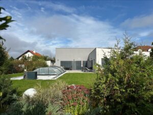 Jedním z exkluzivních projektů byla i výstavba RD se základním klientským požadavkem na vysoký standard bydlení a nízkonákladovou náročností provozu. Jedná se o dlouhodobou spolupráci a komplexní klientský servis: od komunikace s úřady a samosprávou přes realizaci unikátního architektonického řešení včetně krajinářského zpracování rozsáhlé zahrady až po údržbu a správu rodinného domu.